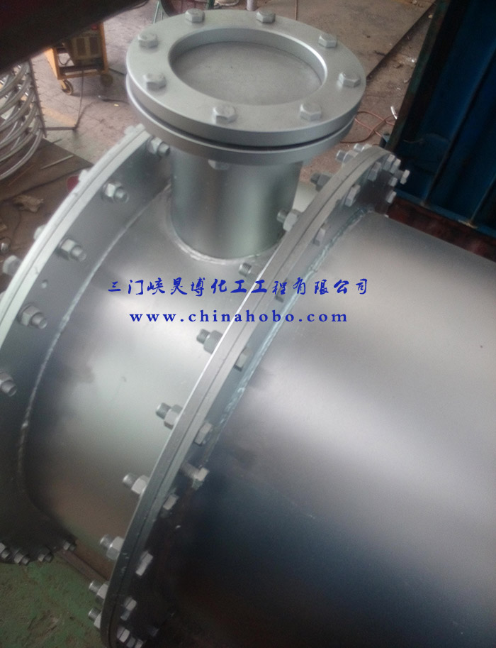 操作人員在換熱器設備上打上三門峽昊博化工工程有限公司標示和電話0398-2918156